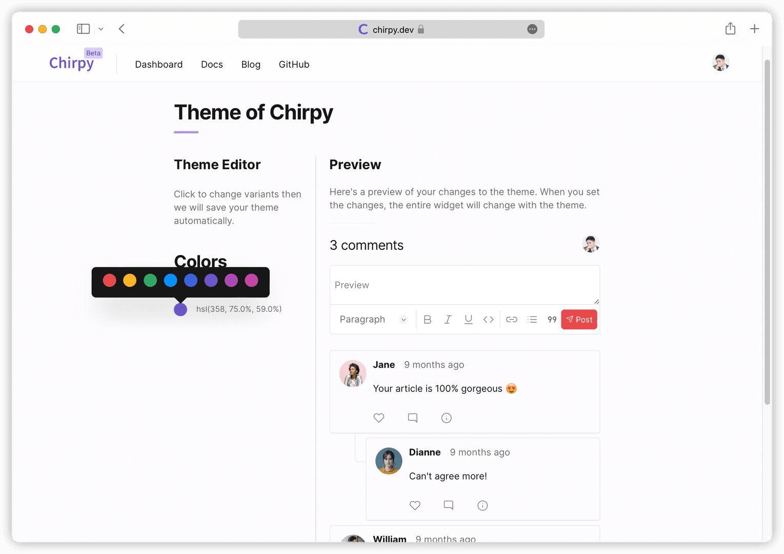 Chirpy is a privacy-friendly and customizable Disqus alternate. With Chirpy, you can reach your audience quickly and build a better community. Check out our GitHub repo to learn how it works.