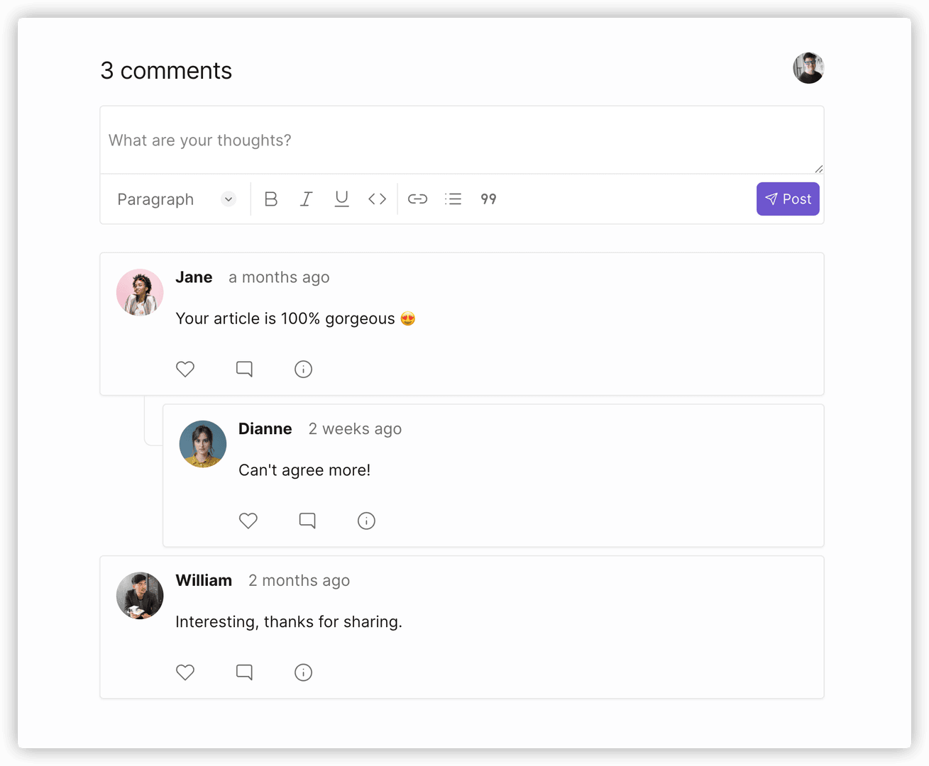 The comment widget supports Rich Text Editing and Markdown Shortcuts 📝: